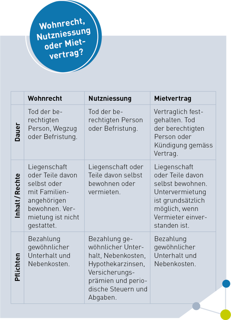 Wohnrecht, Nutzniessung oder Mietvertrag?